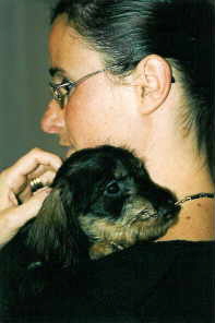 Das ist übrigens meine neue Oma, sie ist mächtig stolz darauf, wie ich wachse. Ich kuschel mich dann immer an sie, ich glaub´ sie mag das!